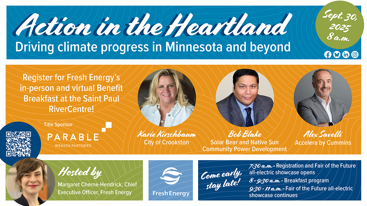 - Our clean energy and climate plans for Minnesota’s 2026 legislative sessionFresh Energy is excited to be kicking off clean energy and climate policy at the 2026 Minnesota legislative session this spring.
