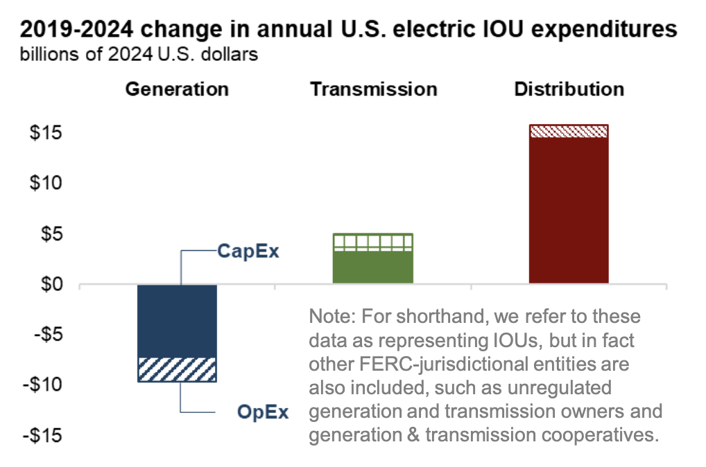 So, can we blame all this infrastructure spending on the energy transition? Not really. Most extra infrastructure spending since 2019 is because of resiliency (think wildfires, storms, and hurricanes) and replacement (replacing 50-year-old poles, wires and components), not new infrastructure.
